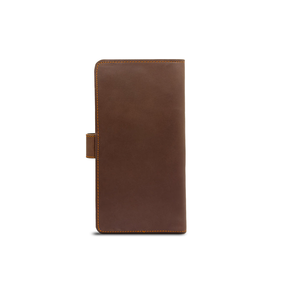 Stay organized on the go with the Ample Travel Kit in Mocha. Crafted from luxurious baby buffalo vintage leather, this travel wallet combines style with functionality. The spacious design includes an ID card window, a coin pocket, a pen holder loop, and 8 card slots to keep all your essential cards at hand. The dedicated passport pocket and dual inner layers for currency and mobile storage ensure everything you need is securely in place. Lined with thick polyester cloth for added durability and closed with a hidden magnet button, the Ample Travel Kit is lightweight, easy to carry, and the perfect companion for your travels.