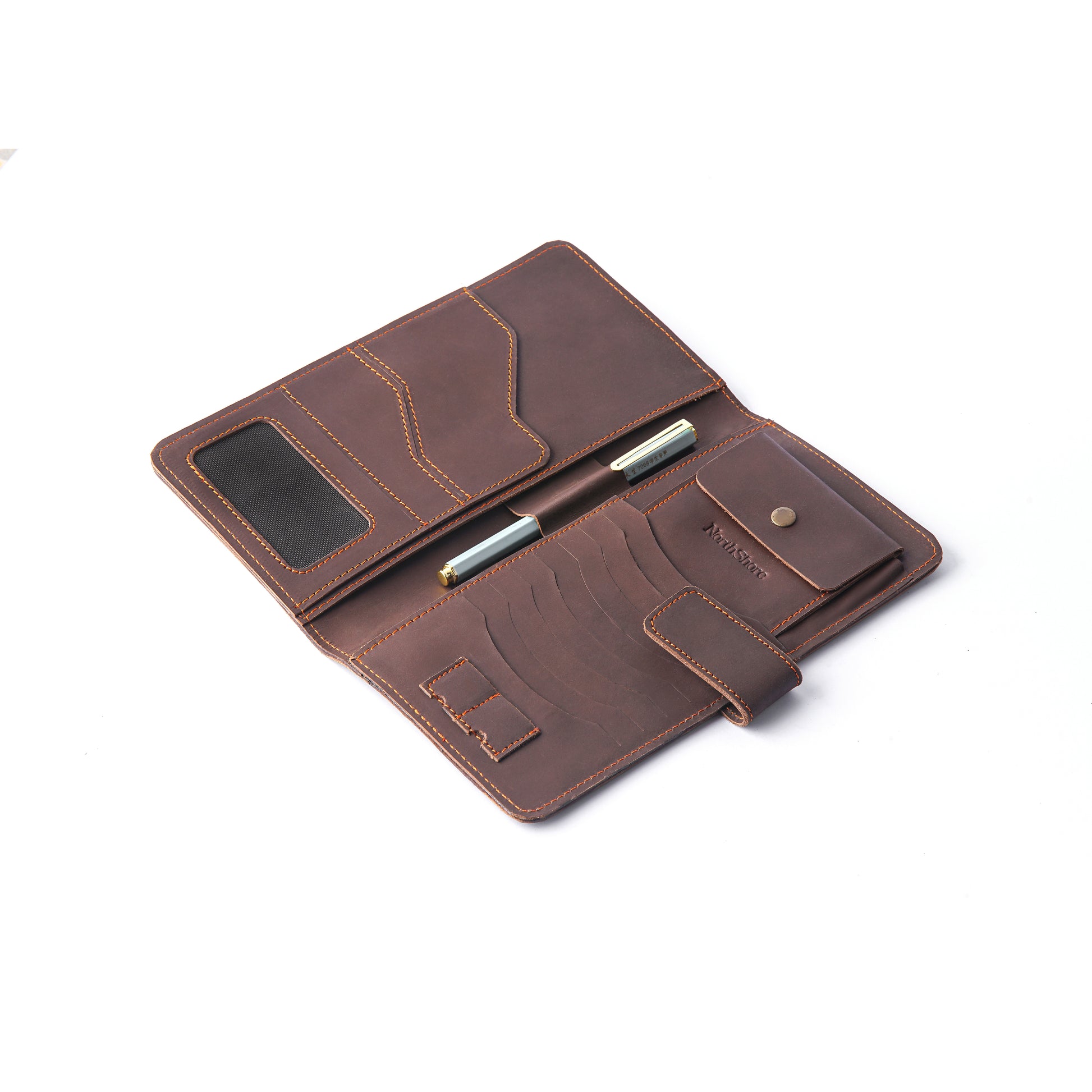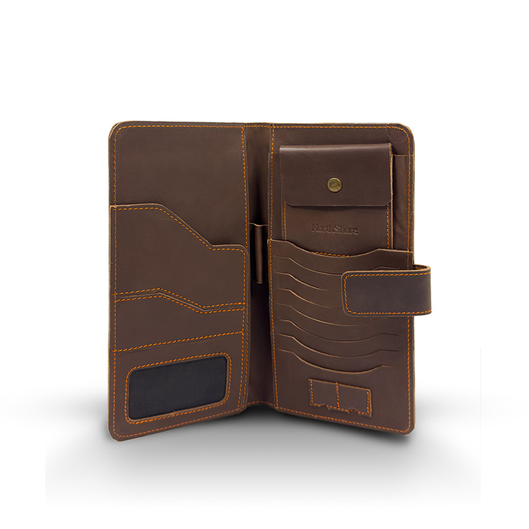 - Multiple Storage Options: Includes ID window, coin pocket, pen loop, 8 card slots, passport pocket, and 2 inner layers for currency and mobile.