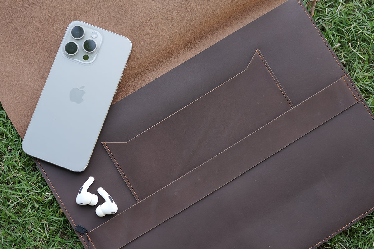 - Secure Closure: The front flap and leather strap design ensures your laptop stays secure inside the sleeve.