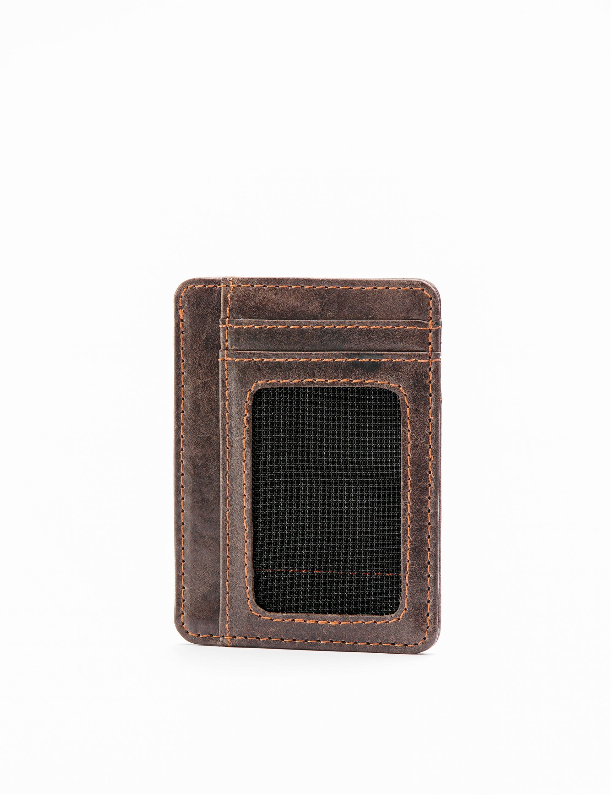 Introducing the Ember Card Holder in Dark Brown, a perfect blend of elegance and practicality. Handcrafted from premium vintage waxy leather, this slim wallet is designed to fit seamlessly into your lifestyle. With four card slots, an ID window pocket, and two folded cash layers, it offers all the space you need in a compact, stylish design. Ideal for both men and women, the Ember Card Holder in Dark Brown is a timeless accessory that keeps your essentials organized and easily accessible, all while exuding a touch of sophistication.